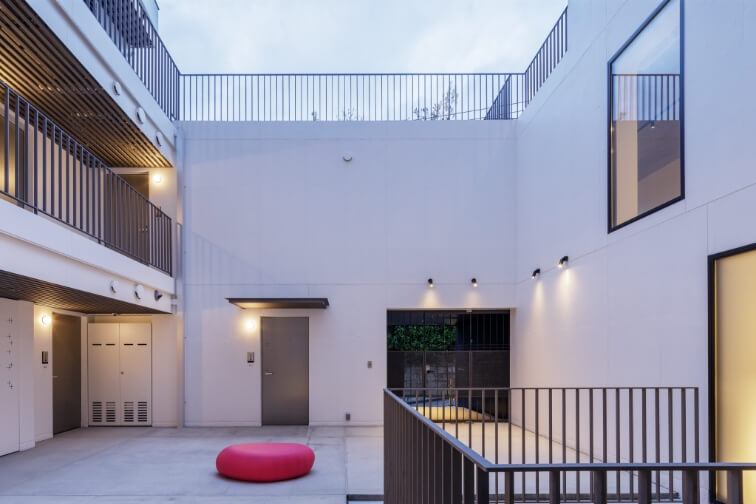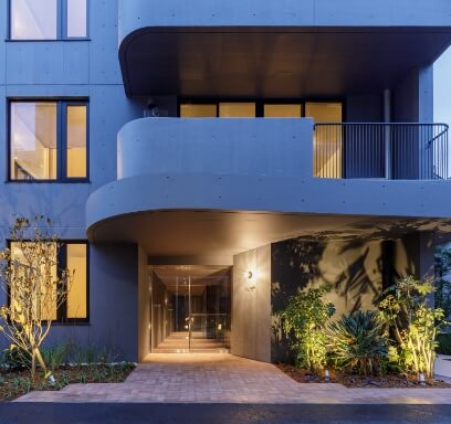 緑豊かな富ヶ谷の特性を活かすため、あたかも昔からそこにあったかのような素材感、シンプルと多様性が共存する物件コンセプトとし、居住者間の交流が自然発生する場の提供を目指しました。