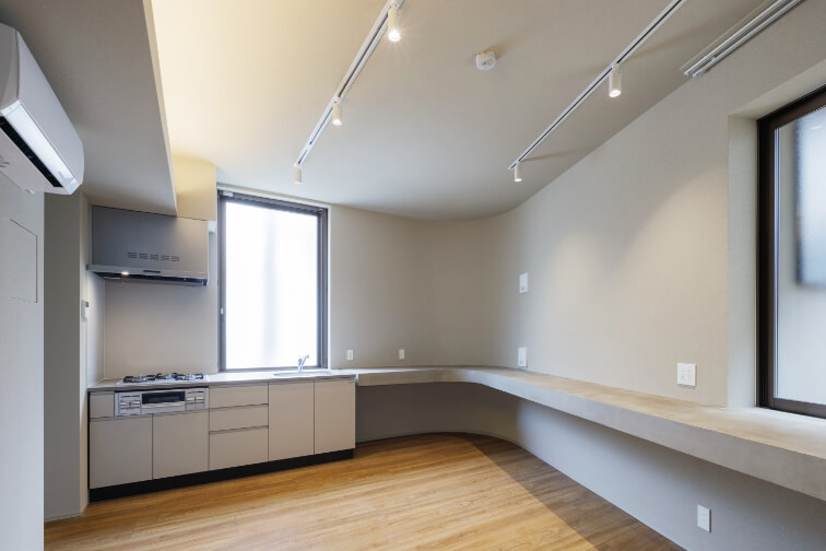 本物件は、働き方改革が叫ばれ、時間や場所にとらわれない働き方と暮らし方が求められるとともに、プライベートとパブリックのシームレス化が進むなかで、住まいに求められる機能を多様化し、ただ住むだけではなく、新しい時代に適応する間取りを提示できるような建築を目指し、設計いたしました。