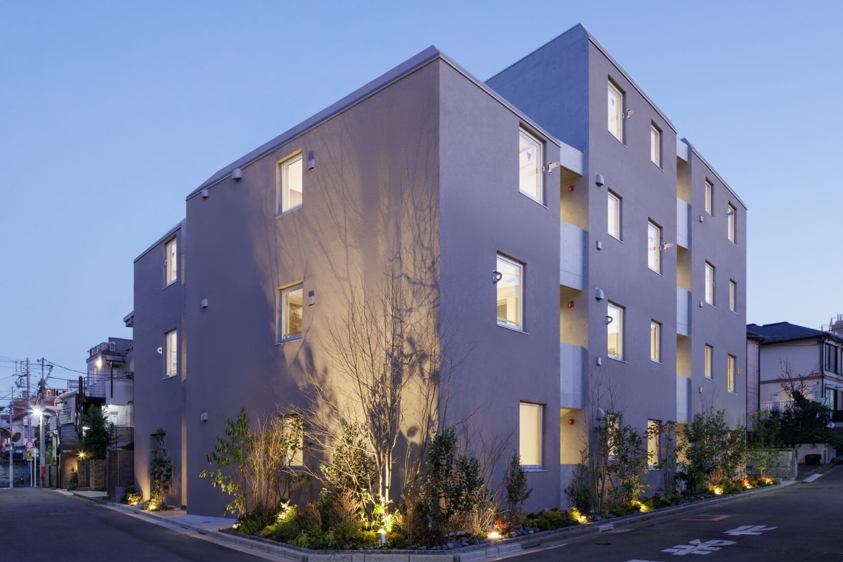 周辺環境は渋谷区の閑静な住宅地で2、3階建ての建築が密集した状態で建ち並んでいる丘状の高低差のある敷地である。密集して隣家があることから、光や風を取り入れるコモンスクエアを中心に配し、全住戸共有のアプローチ空間となっている秀逸な計画である。地下一階、地上3階建てとし、17戸の住戸は一部メゾネット住戸がある画一的でない多様な平面、断面計画とし、開口部は周辺の庭の環境を取り入れながら内部空間が明るく開放的な暮らしができるように丁寧に考えられている建築である。今後もコモンスクエアを中心に帰属意識が育まれ、良好なコミュニティが育つことを期待している。