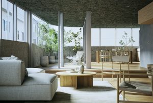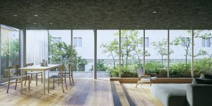 大きく開口をとった北面には、開放的なルーフバルコニーをつくり、緑豊かな植栽を設けます。これらにより、安定した明るさと植栽の豊かな緑が入り込み、都心の中でも豊かな自然を感じることができる住戸空間を目指します。