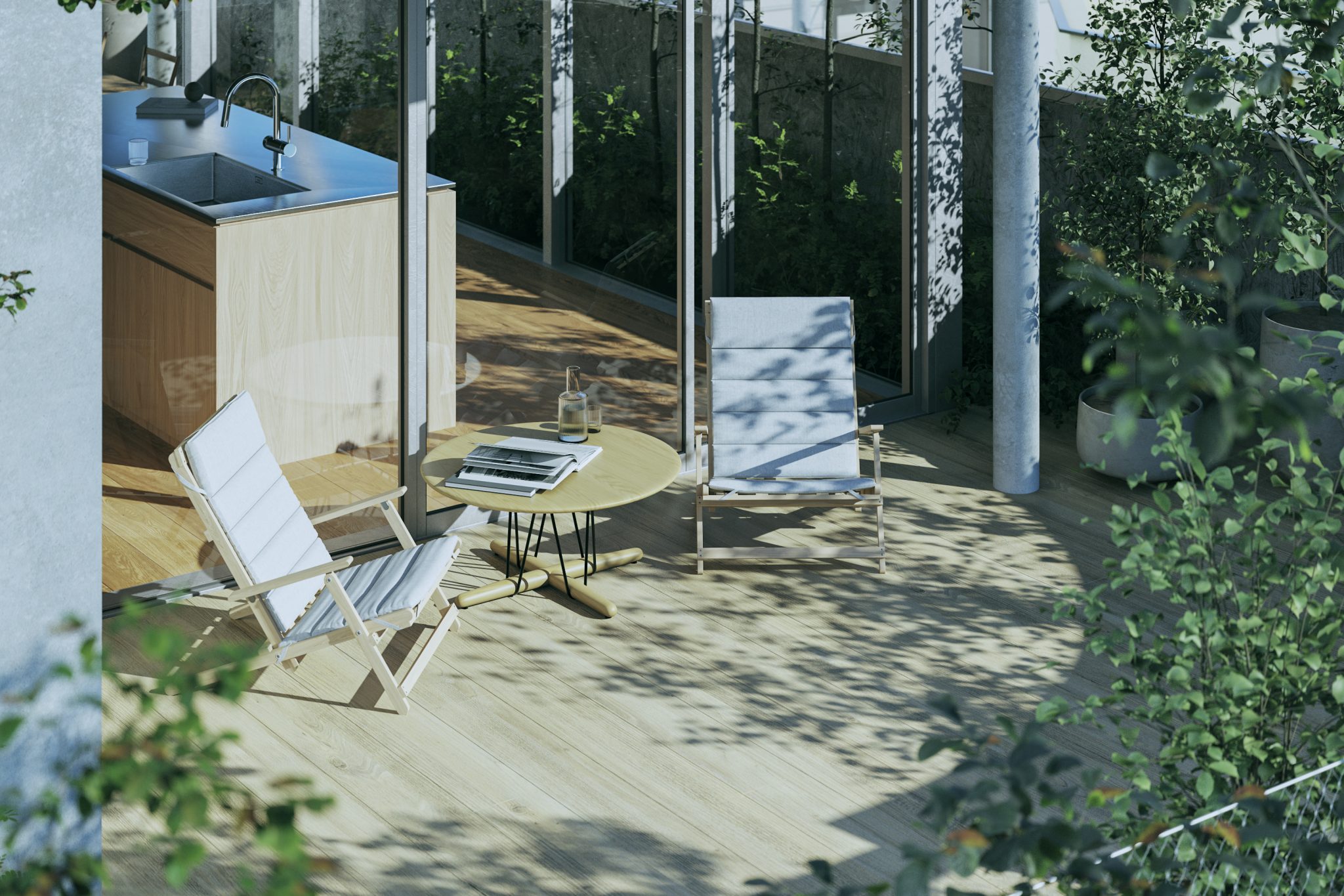 所々にバルコニーを設け、時には室内と室内を隔てるスペース、時には室内と連続した自由な使い方ができる場としました。植栽を置いたり、アウトドアファニチャーを置いたりと自分のライフスタイルに合わせて自由に表現できる場でもあります。