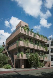 大地に人工物をつくる建築行為は、街から自然の緑を奪う行為ともいえます。その自然を戻すために、緑化に関する条例が制定されているが、それ以上に、建築行為がなされればなされるほど、街に自然を還元できる状態をつくりたい。本計画は、緑豊かな建築が近接して建つことで街並みを変え、街に自然を還していく試みです。