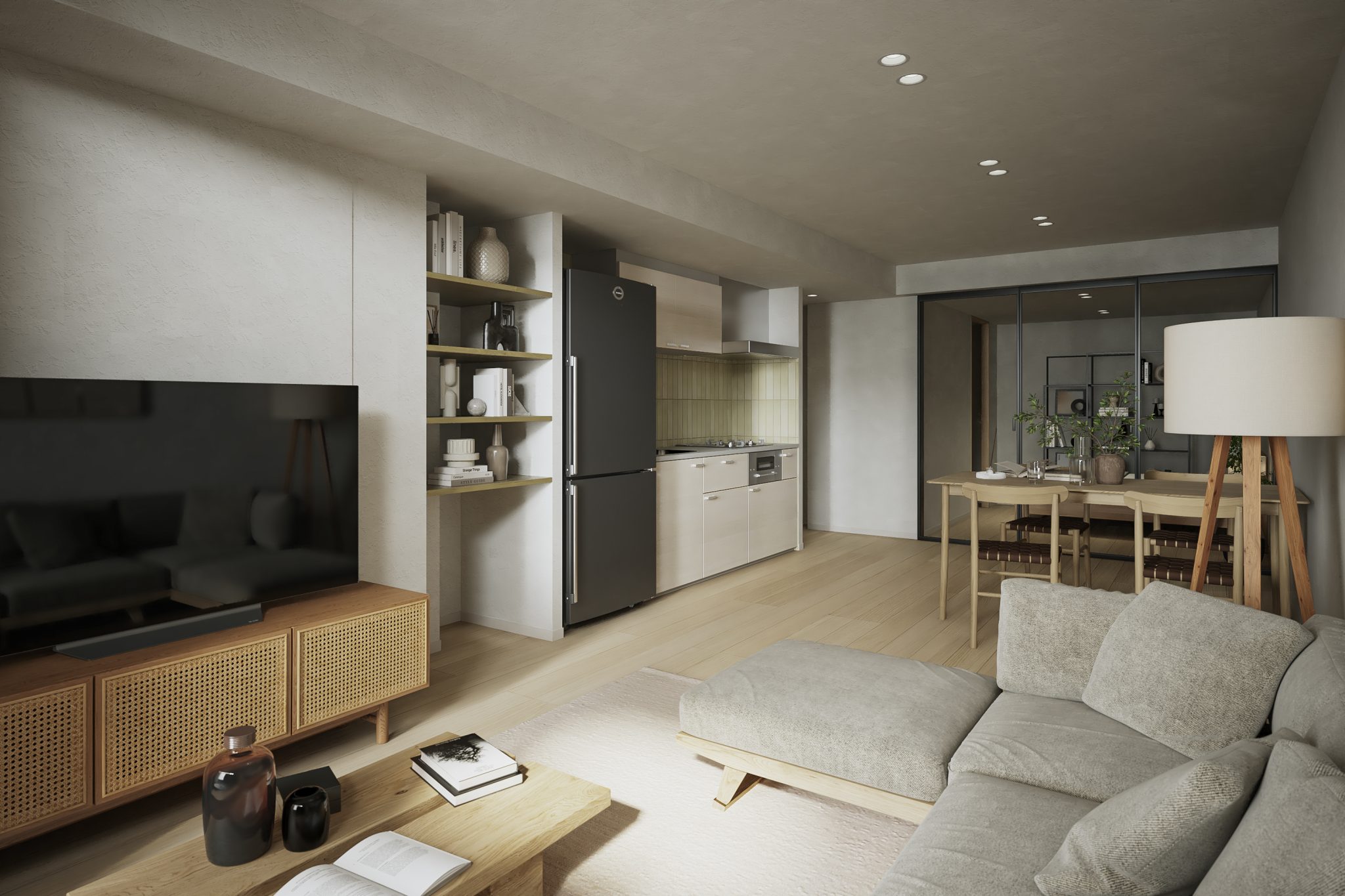 そこで、内装デザインのコンセプトを「ニュートラルカラーの洗練された空間」とし、どんな入居者や家具にも調和するデザインとしました。