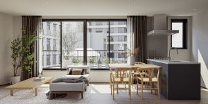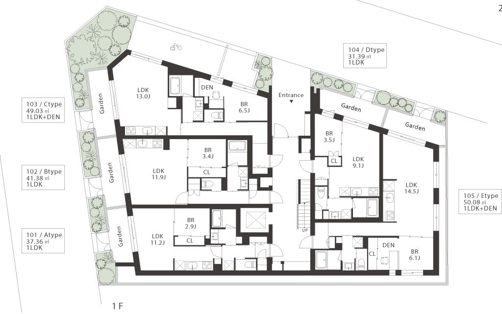 駅からエントランスまで道路に面している範囲に季節を感じられる植栽を多く計画することで、住む人が出入りするたびに植栽の横を通り季節の変化を楽しめるように計画しています。四季を感じることで癒し効果が生まれ、気持ちのいい生活を送ることができます。