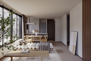 本計画地は杉並区荻窪です。最寄り荻窪駅から徒歩8分の場所にあり、 駅にはスーパーや飲食店が多く、便利ながらも計画地周辺は閑静な住宅街で落ち着きのある場所です。そこで、本計画では、都心の喧騒から離れ、体を休められる時間と空間を実現し、様々な癒し効果のあるものを多く取り入れる工夫をしました。