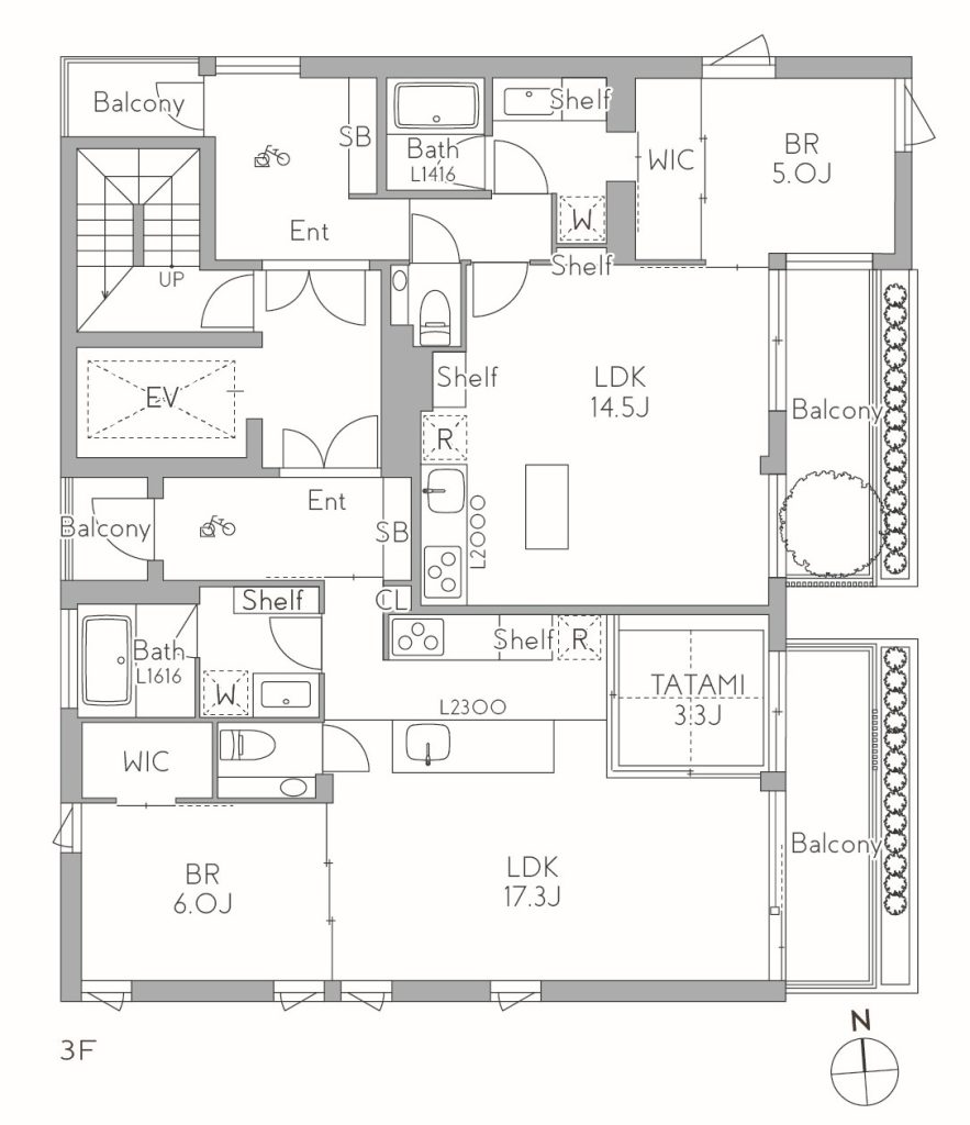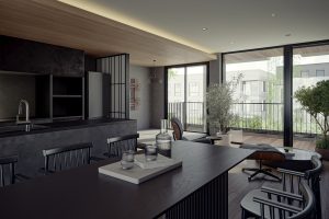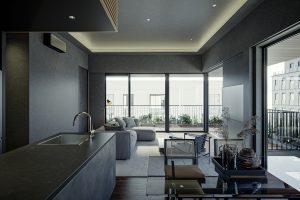 街の賑わいや日差しの変化に応じて、LDK内での居場所を細かに変えたり、バルコニーへ出たり、奥に引きこもったりと、室名に縛られない自由な空間の使い方が可能となります。自身で居場所を選び、街との関係性をコントロールする。そんな都市的でアクティブなライフスタイルを支える設計です。