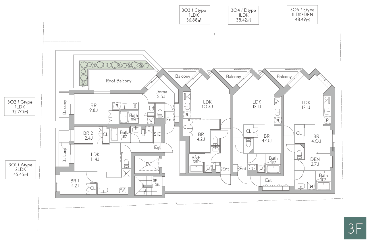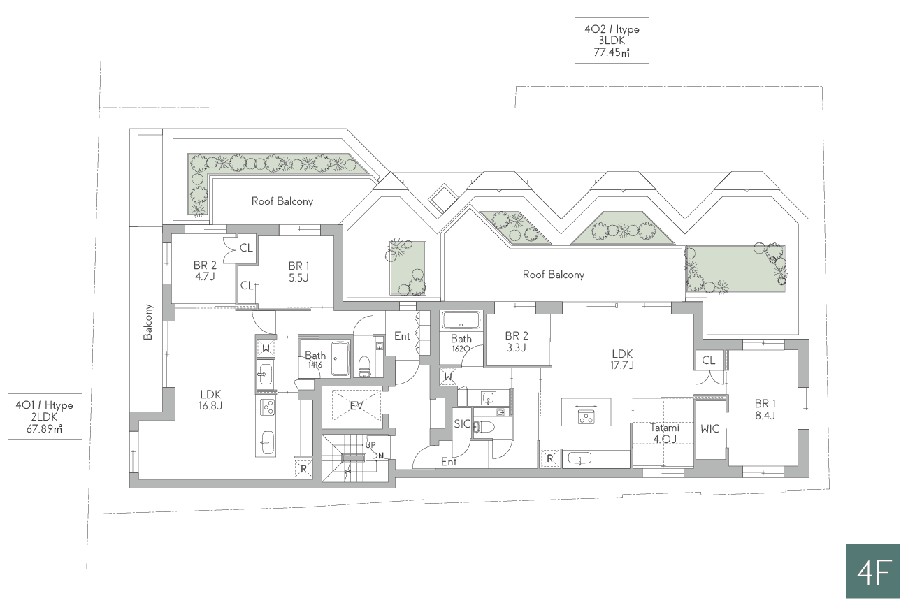緑豊かな公園や文化施設が点在し、住みやすい環境が整っている街並みを保つべく緑を多く取り入れています。より自然と共生しあうため、ルーフバルコニーの周りに屋上緑化を設けました。