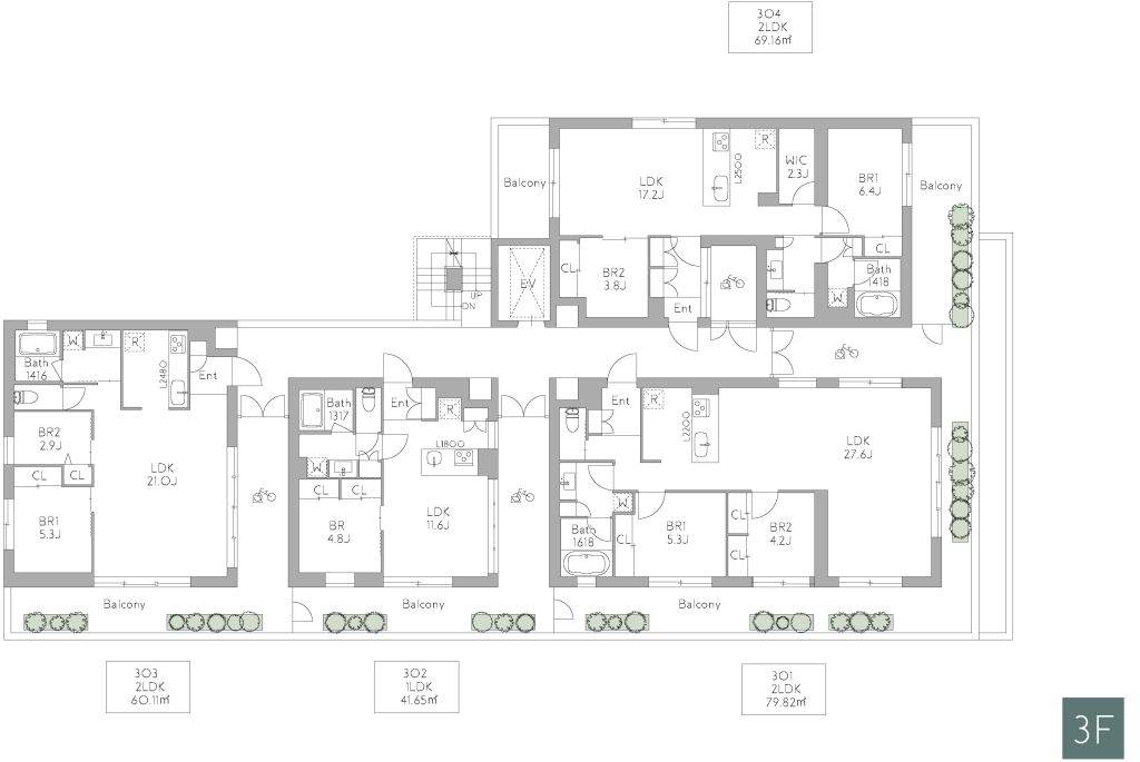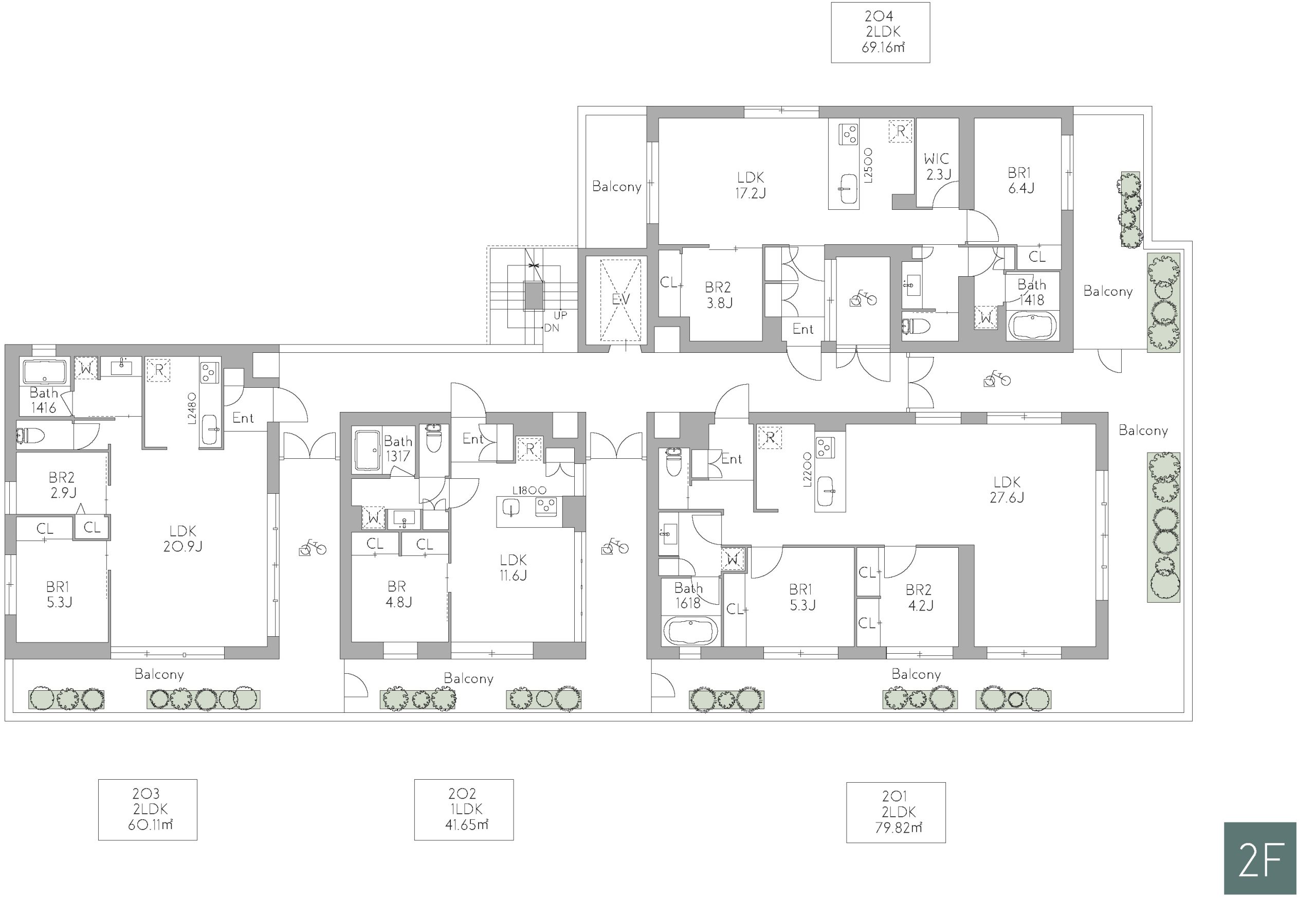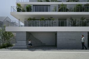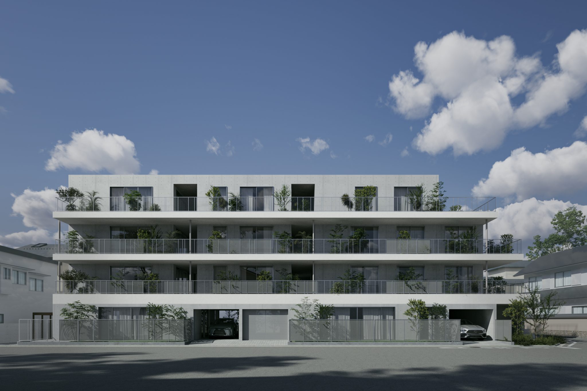 半屋外空間(バルコニー)を介して、人と人、人と街がゆるやかに関わり合う、戸建のように集まって住む集合住宅です。
