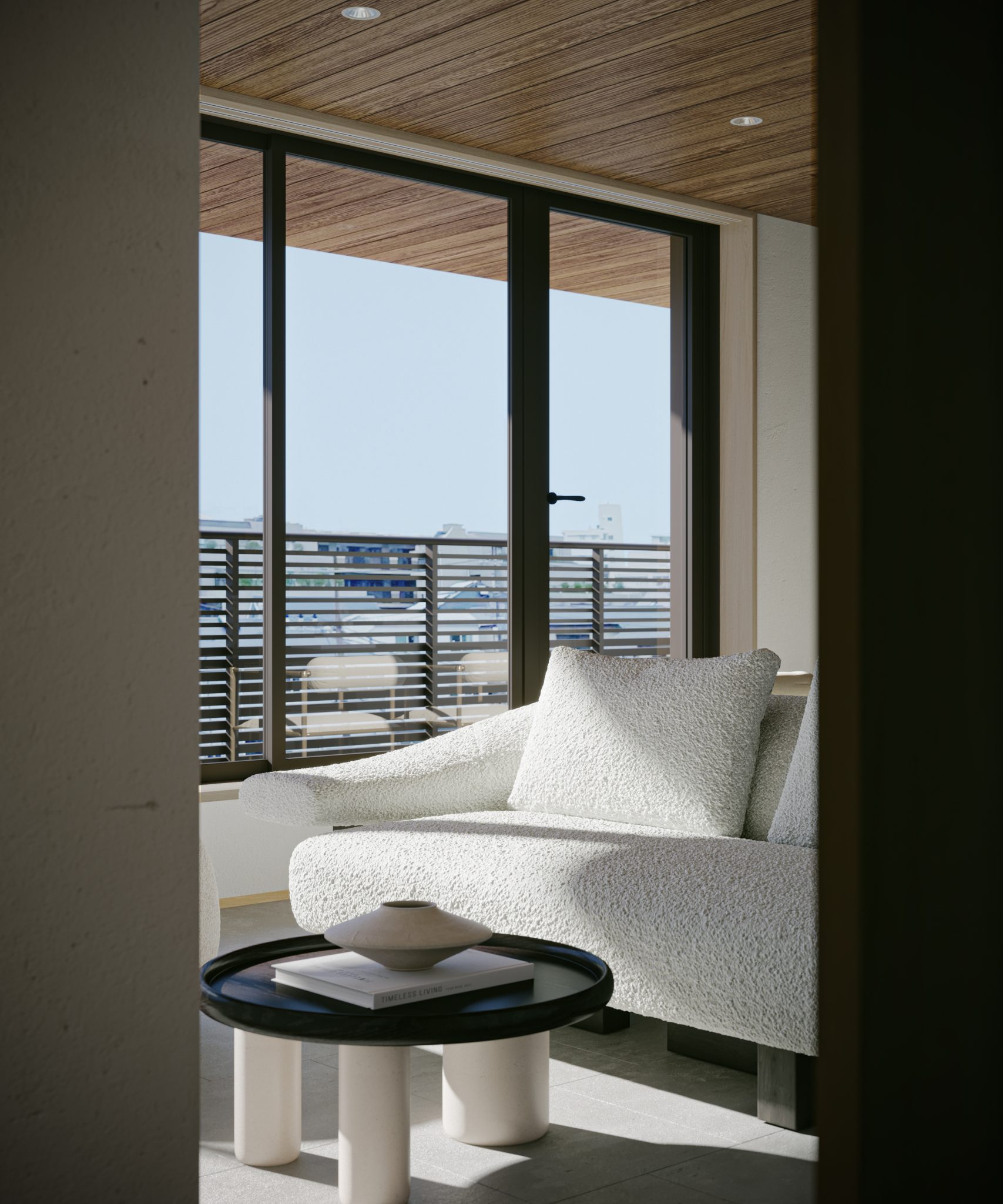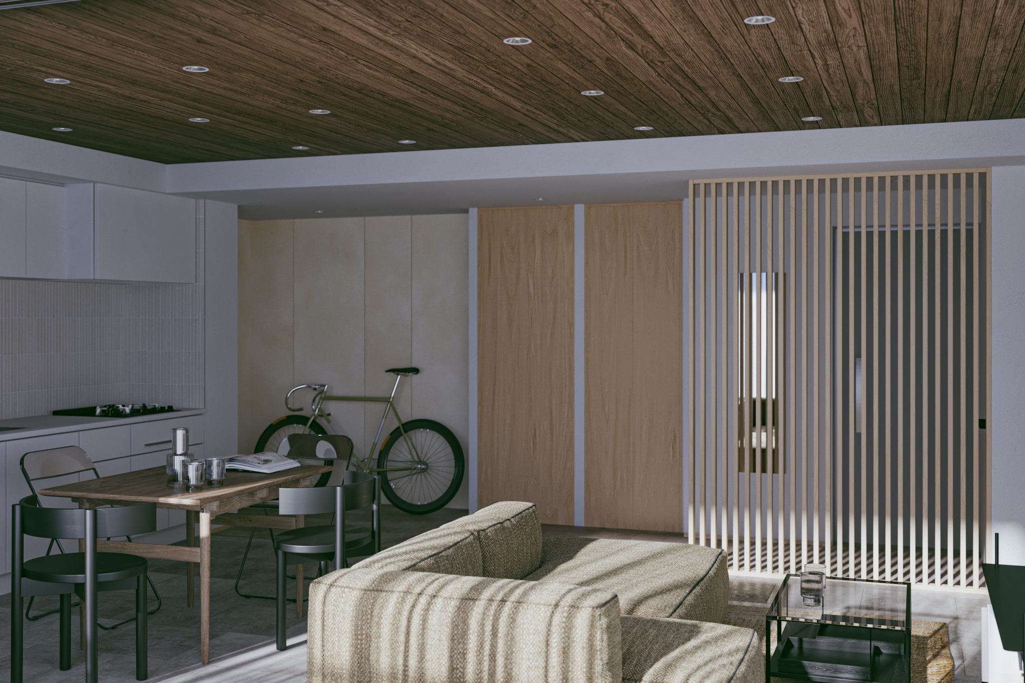 開放的な空間が生活に余裕を与え、自分らしさを表現する為の生活の余白を作り出します。さらに視線の抜ける開口からの光と景色が実空間以上の広がりを生活に与え、入居者の心理的な解放を促します。