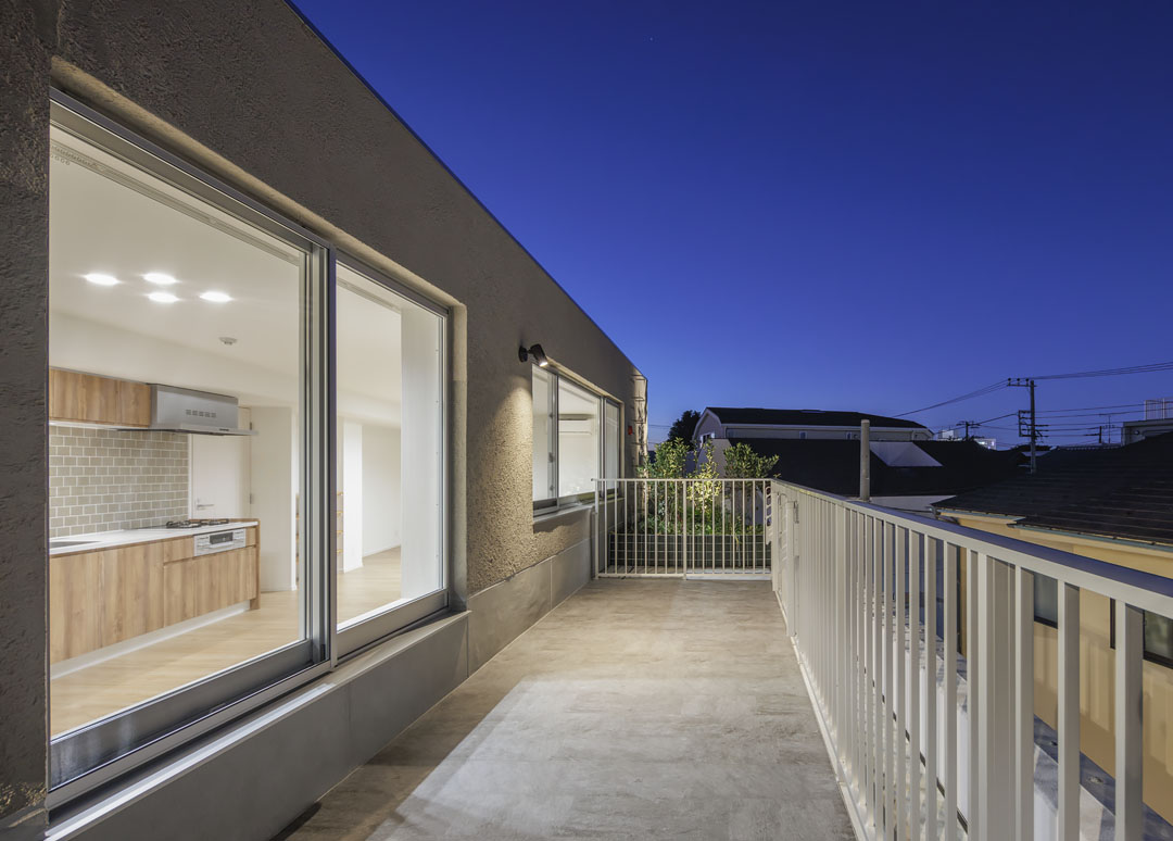 この立地に馴染むように、本物件は緑が溢れた住まいになるよう外観をプランターに見立てました。いつも身近に植物を感じられる住まいへ。