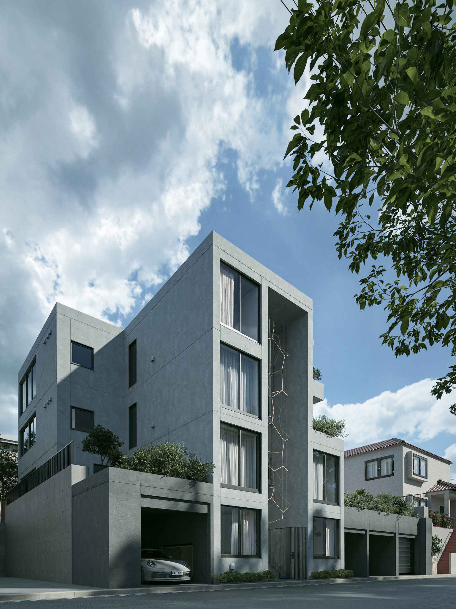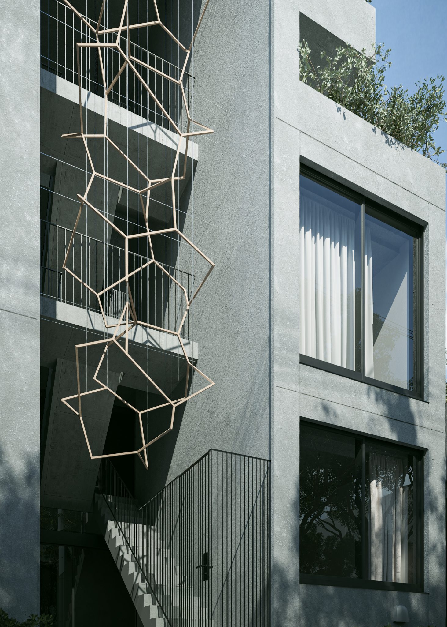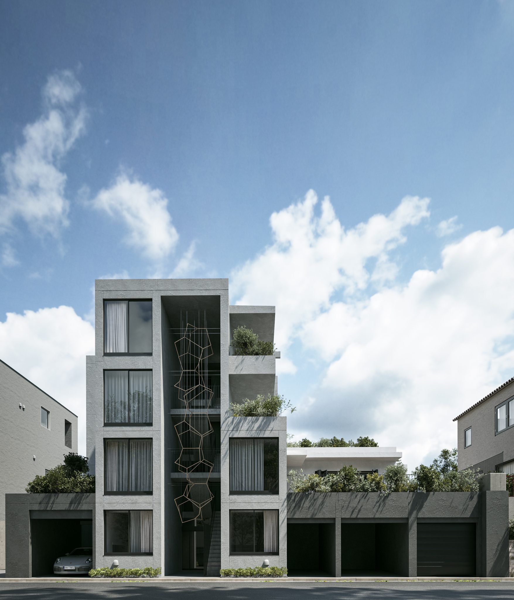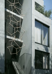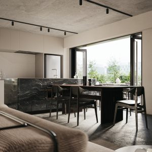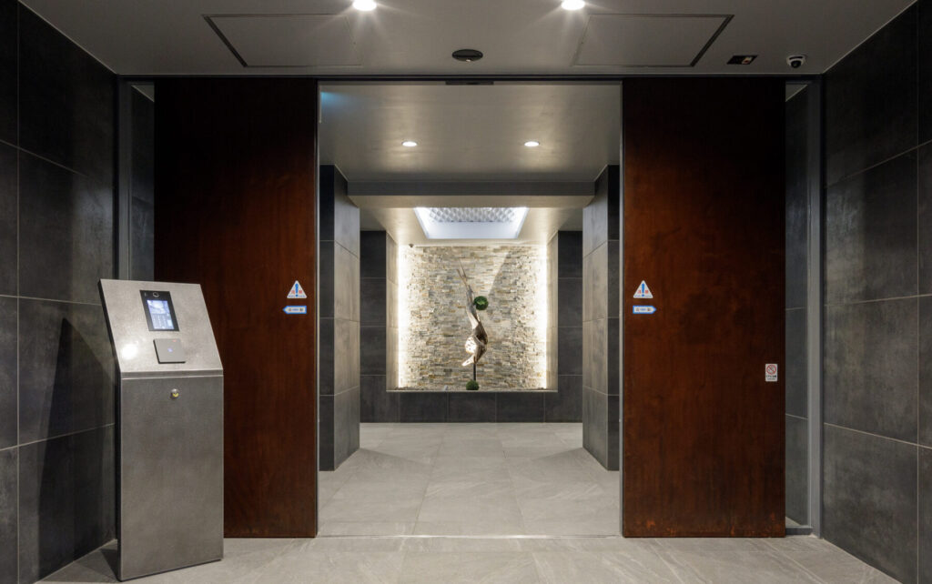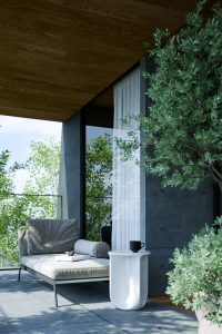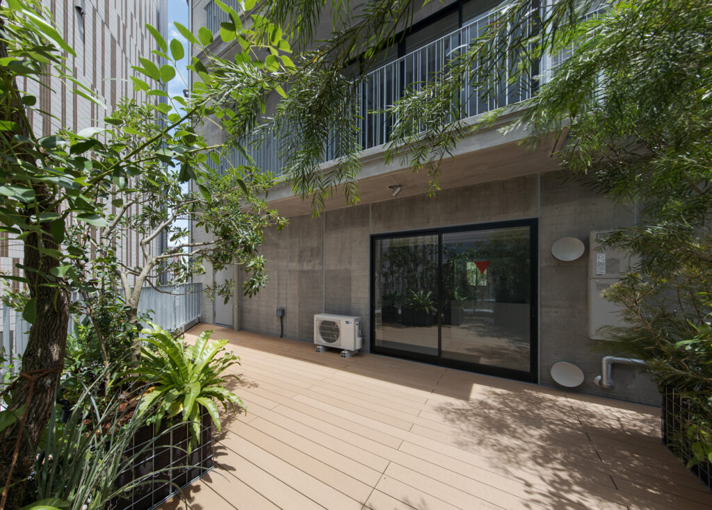6戸に限定された多様なプランの住戸は全て多方向に開口部を有しています。うつろう陽の光や風の流れをしっかりと感じることができ、内壁は自然素材である漆喰が採用され、身体の芯から豊かさを感じられる住空間です。さらにドライエリアと連続するビルトインガレージ、リビングやダイニング、ベッドルームから延長された緑あふれるルーフトップテラスなど、内/外の連続性を楽しむ生活が展開できます。高さ11mのエントランスホールには新進気鋭のアーティストによる作品が常設展示されます。