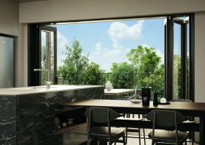 敷地は、武蔵野台地を刻むように流れる呑川(のみがわ)の河岸段丘上にあります。敷地から呑川を挟んで東側に広がる目黒台に向けての眺望は他では得難い貴重なものです。敷地が持つこの特性を十二分にいかし、東向きのピクチャーウインドウ(外の風景をまるで絵画のように切り取る窓)を各住戸に備えます。