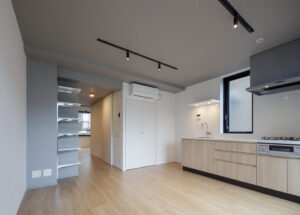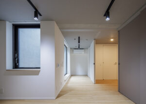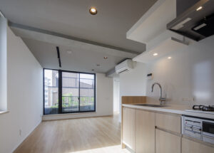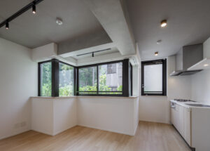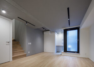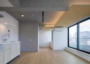 高低差のある土地を活かし、地階でありながら居心地のよい住戸をデザインしています。