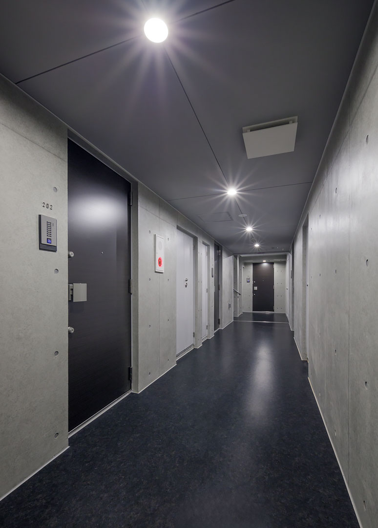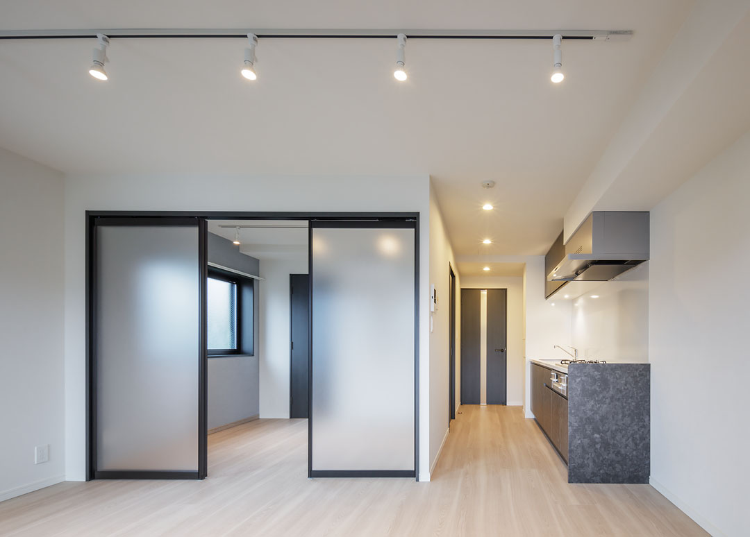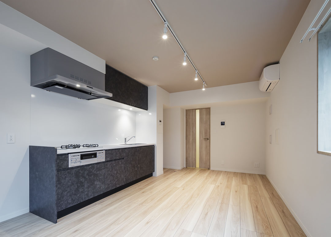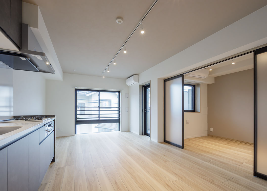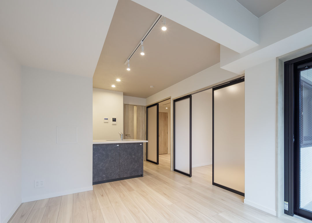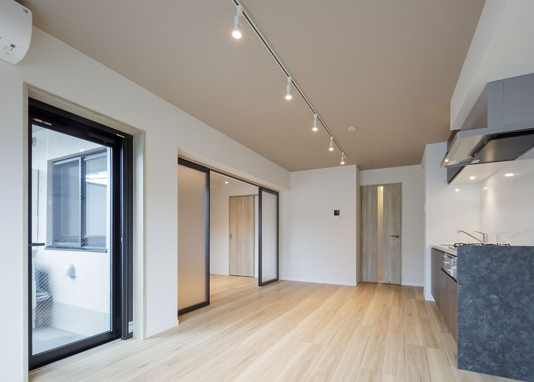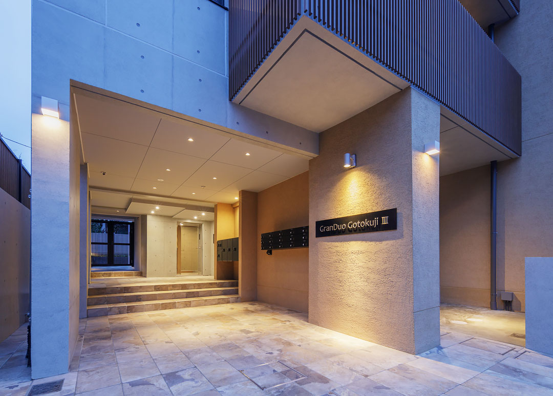 招き猫の発祥地としても有名な豪徳寺。最近はおしゃれな飲食店も増え、落ち着いた雰囲気の中にも活気が感じられる人気の街として知られています。コンクリートの外壁とアースカラーを基調とした特徴的なバルコニーフェンスは、周囲の街並みと調和した佇まいとなっております。また、内装にはブラックのサッシや扉を採用し、シックで落ち着いた空間を実現しました。招き猫が出迎えてくれる街で、幸福度の高い暮らしを実現してみませんか。