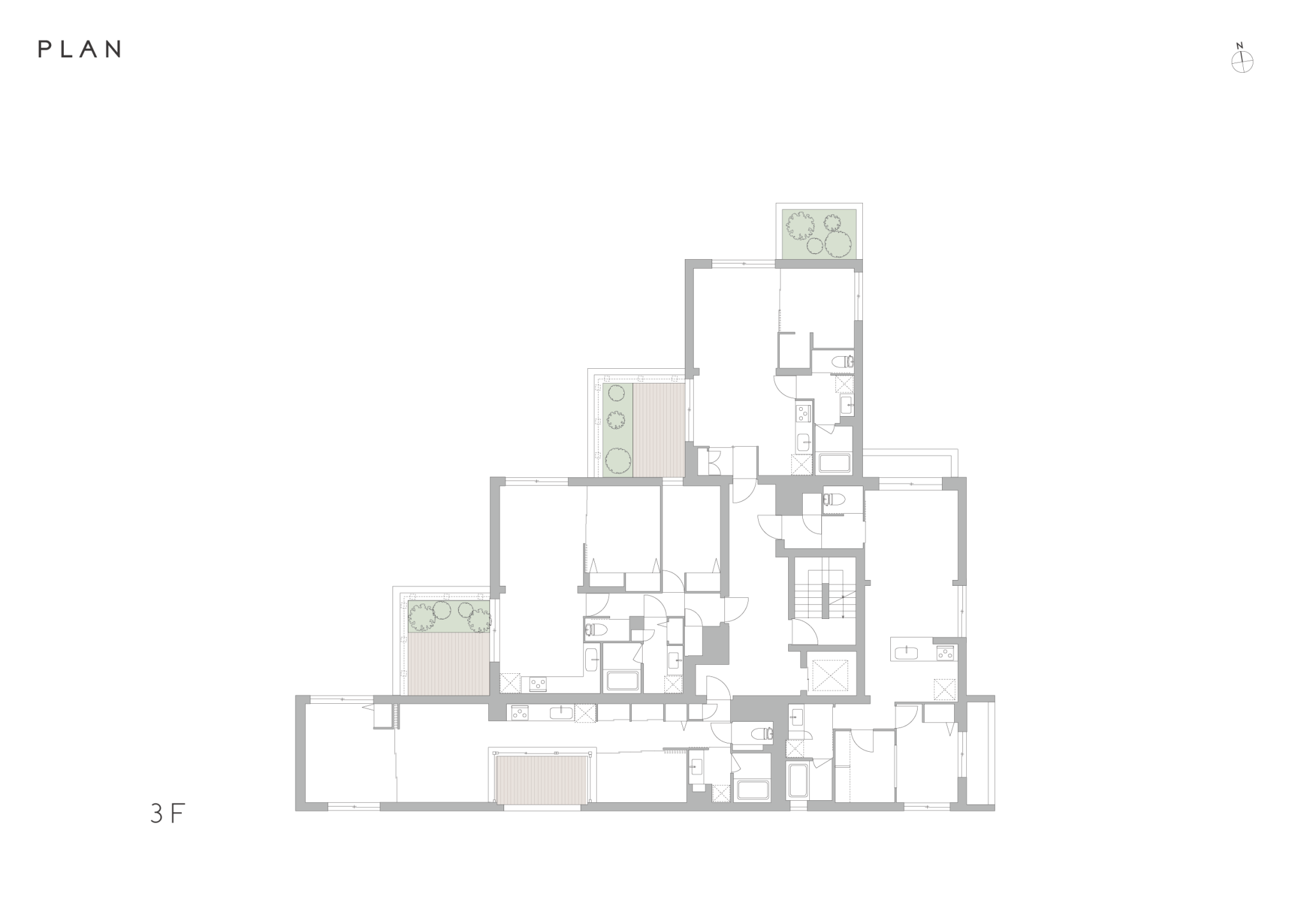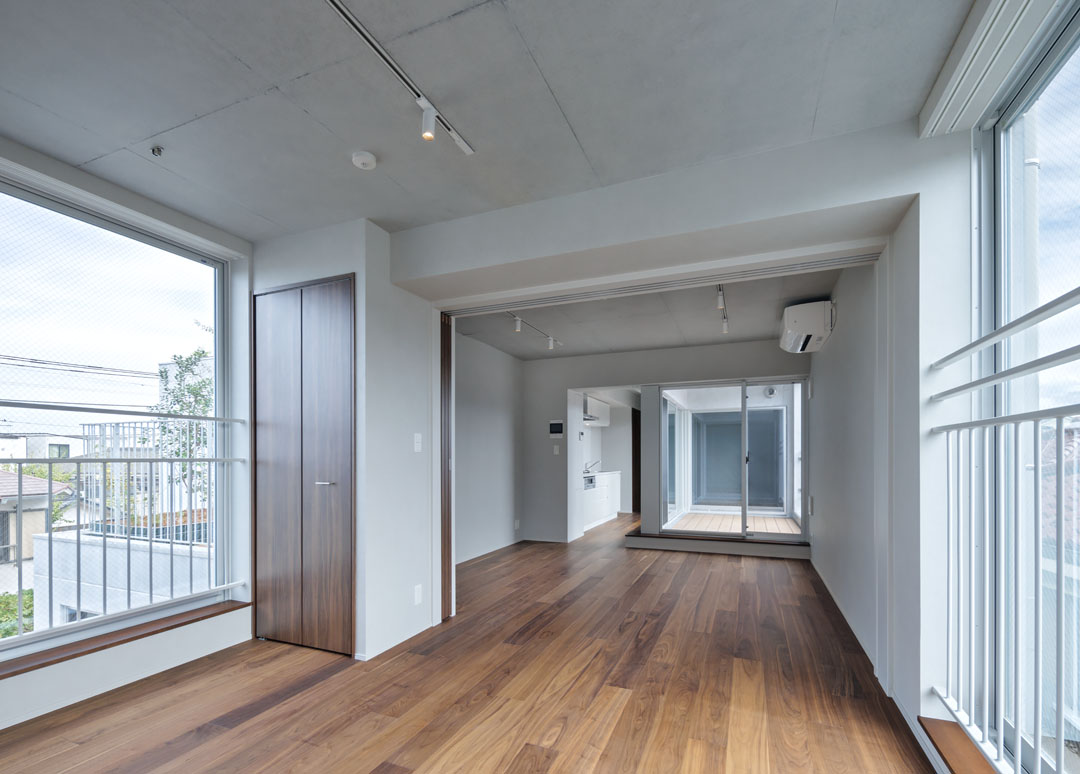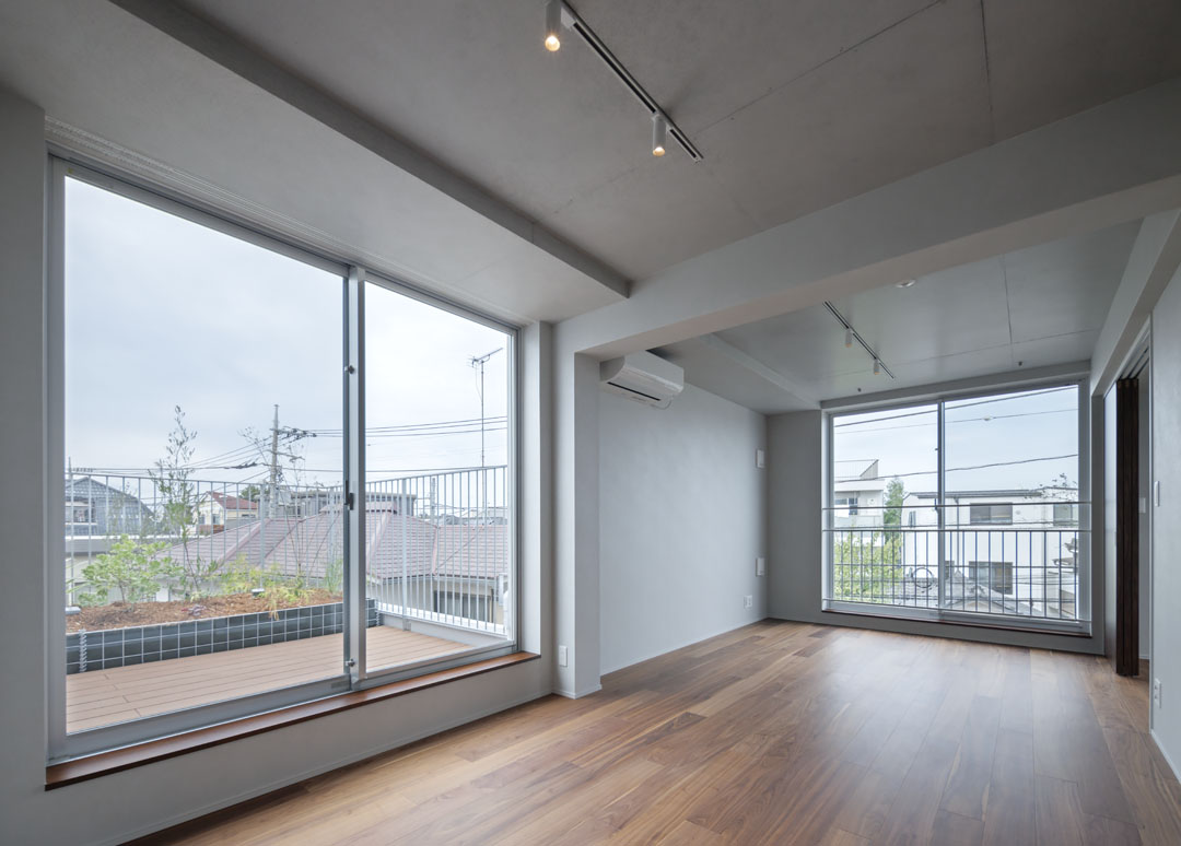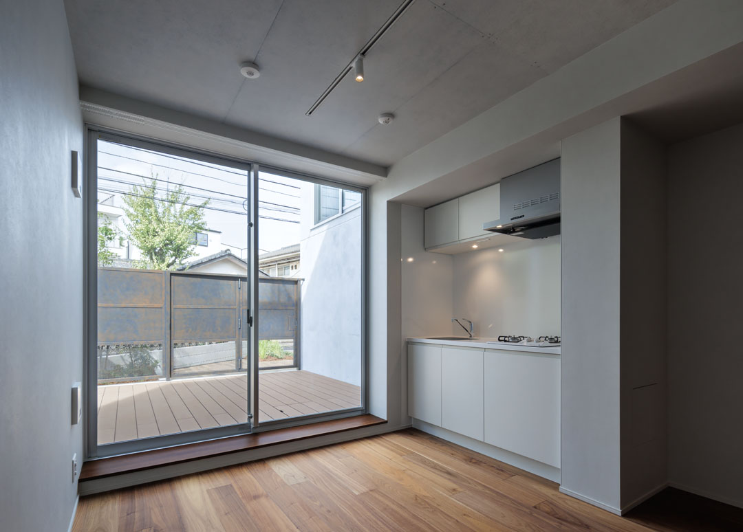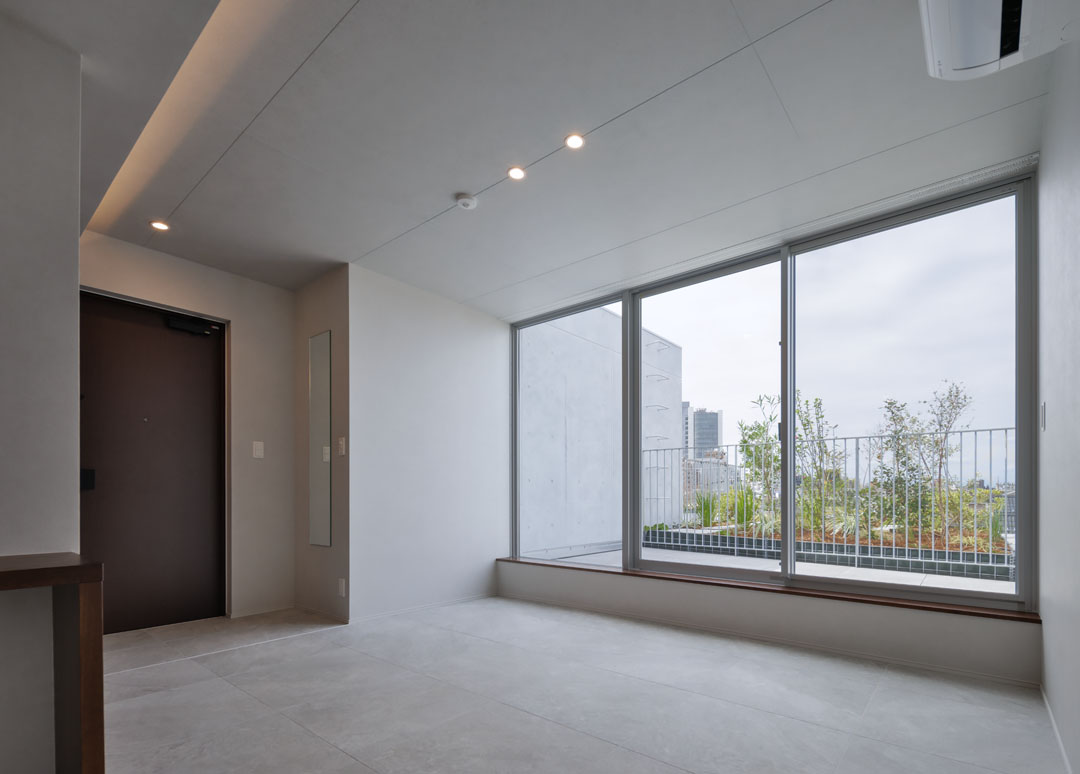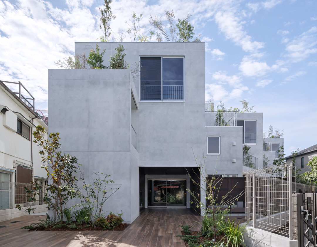 杉並区の穏やかな空気に包まれる荻窪駅。駅周辺には多彩なお店が並び、にぎやかでありながらも、少し歩けばどこか懐かしい雰囲気の住宅街が広がります。そんな荻窪の閑静な街並みに馴染むような、小さな丘のような集合住宅が誕生。 箱を重ね合わせたようなリズミカルなファサードと、緑に包まれたフォルムが特徴です。この建物の魅力は、「庭付きの1戸建て」のような住戸設計。 多くの住戸で開口の先に庭(ルーフバルコニー)があり、季節ごとに変化する中低木が彩りを添えています。 庭を設けることで隣家との距離を保ち、 プライバシーを確保しつつも豊かな窓辺から自然光を取り入れ、開放感のある空間が広がります。