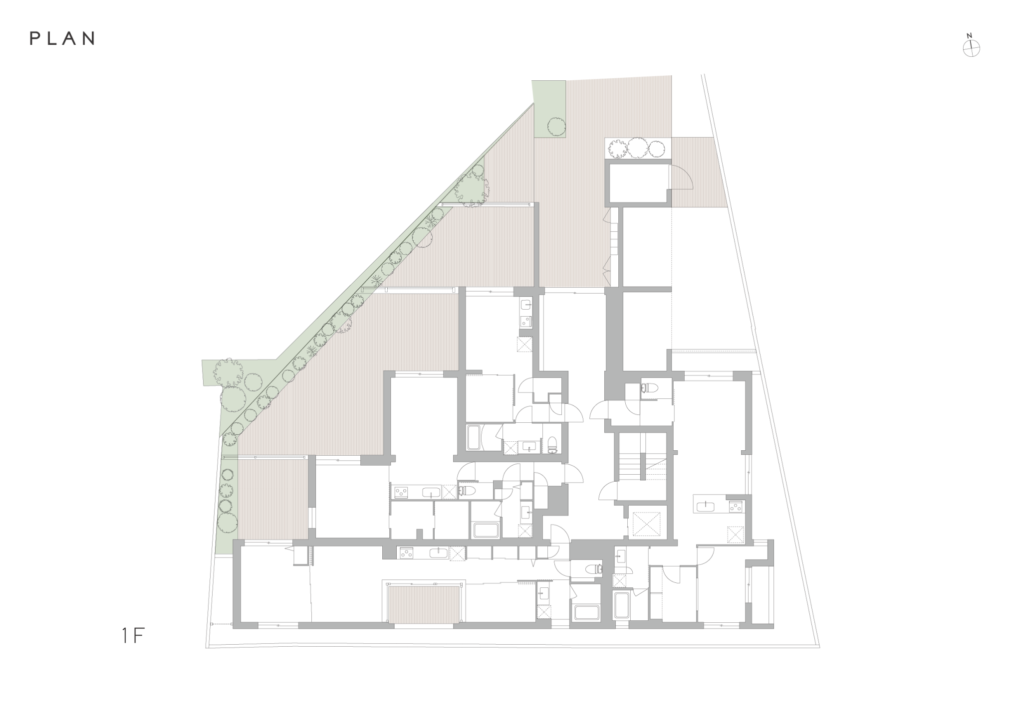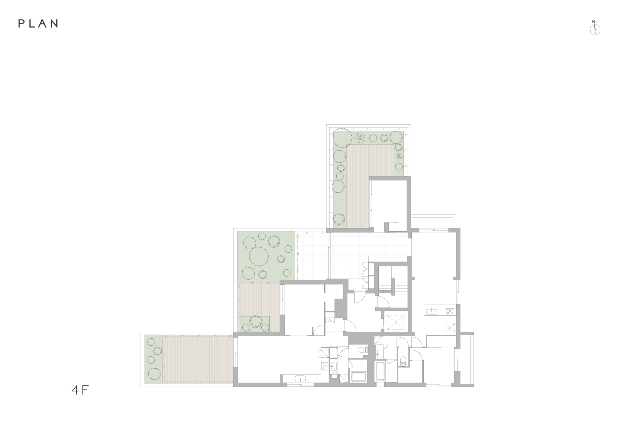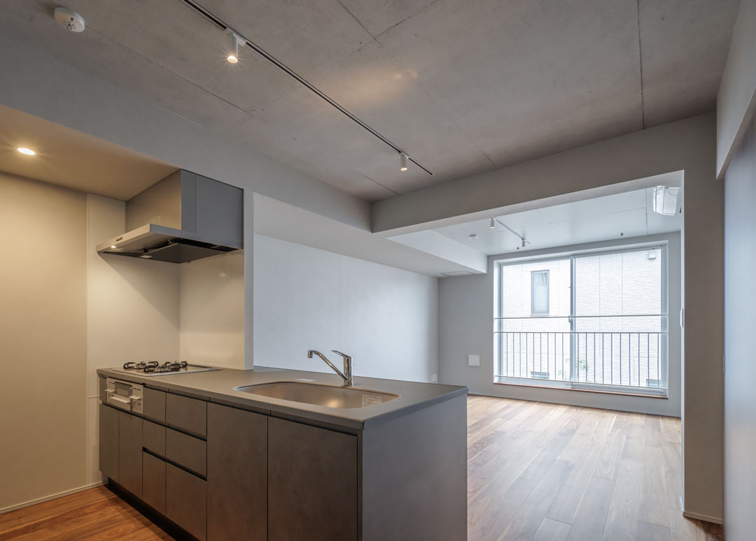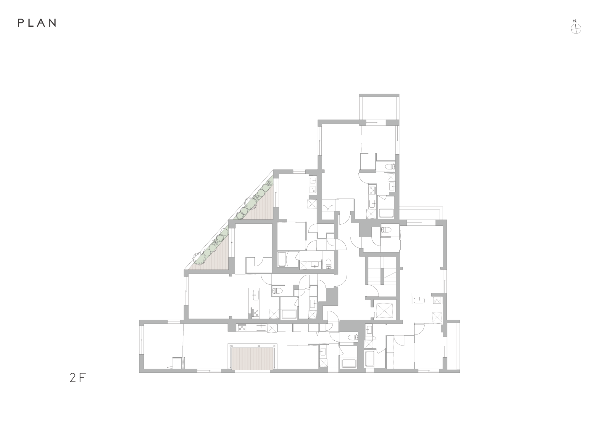 杉並区の穏やかな空気に包まれる荻窪駅。駅周辺には多彩なお店が並び、にぎやかでありながらも、少し歩けばどこか懐かしい雰囲気の住宅街が広がります。そんな荻窪の閑静な街並みに馴染むような、小さな丘のような集合住宅が誕生。 箱を重ね合わせたようなリズミカルなファサードと、緑に包まれたフォルムが特徴です。この建物の魅力は、「庭付きの1戸建て」のような住戸設計。 多くの住戸で開口の先に庭(ルーフバルコニー)があり、季節ごとに変化する中低木が彩りを添えています。 庭を設けることで隣家との距離を保ち、 プライバシーを確保しつつも豊かな窓辺から自然光を取り入れ、開放感のある空間が広がります。