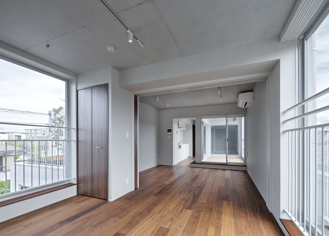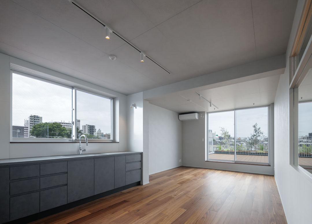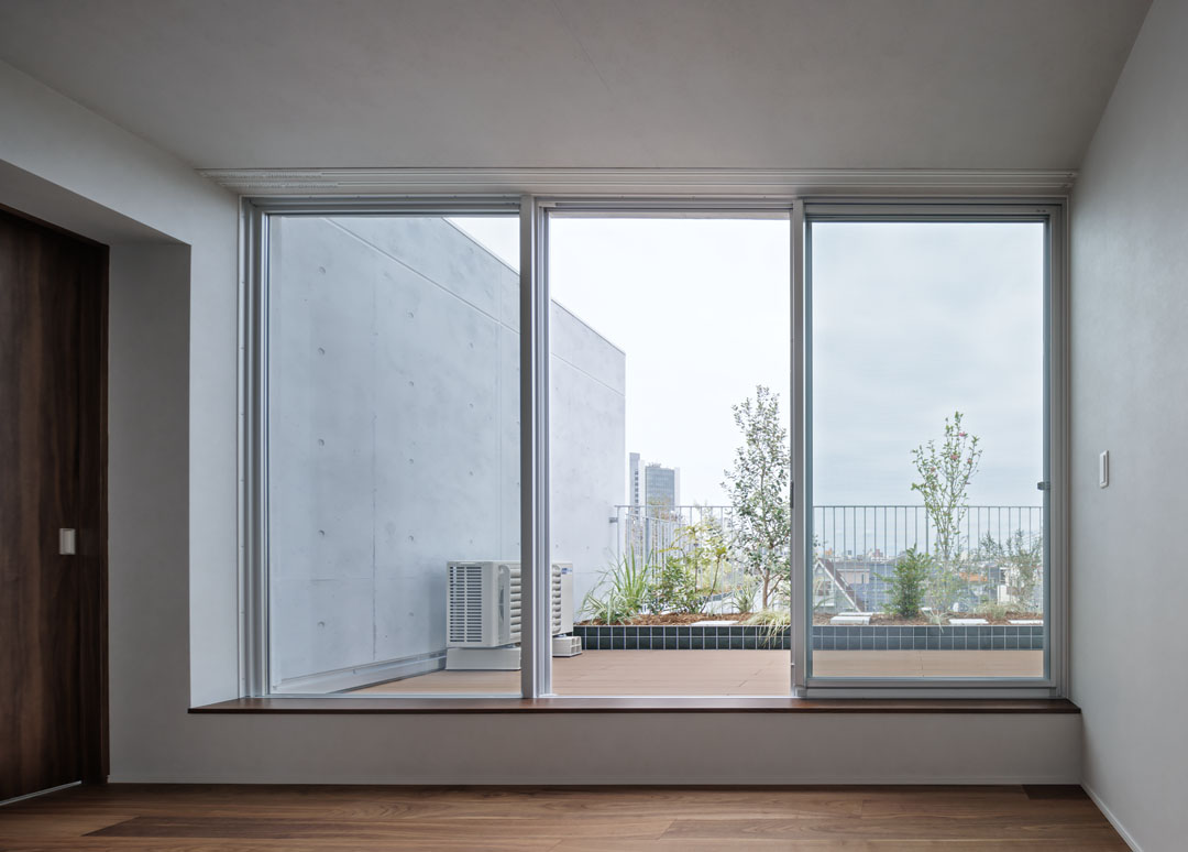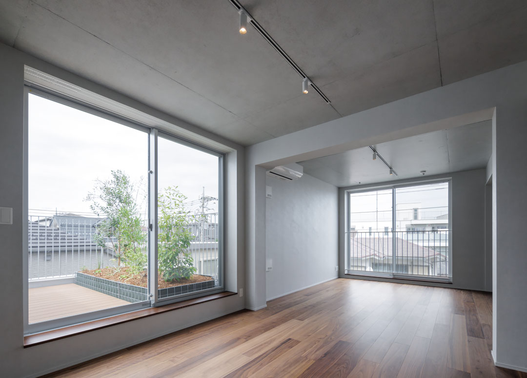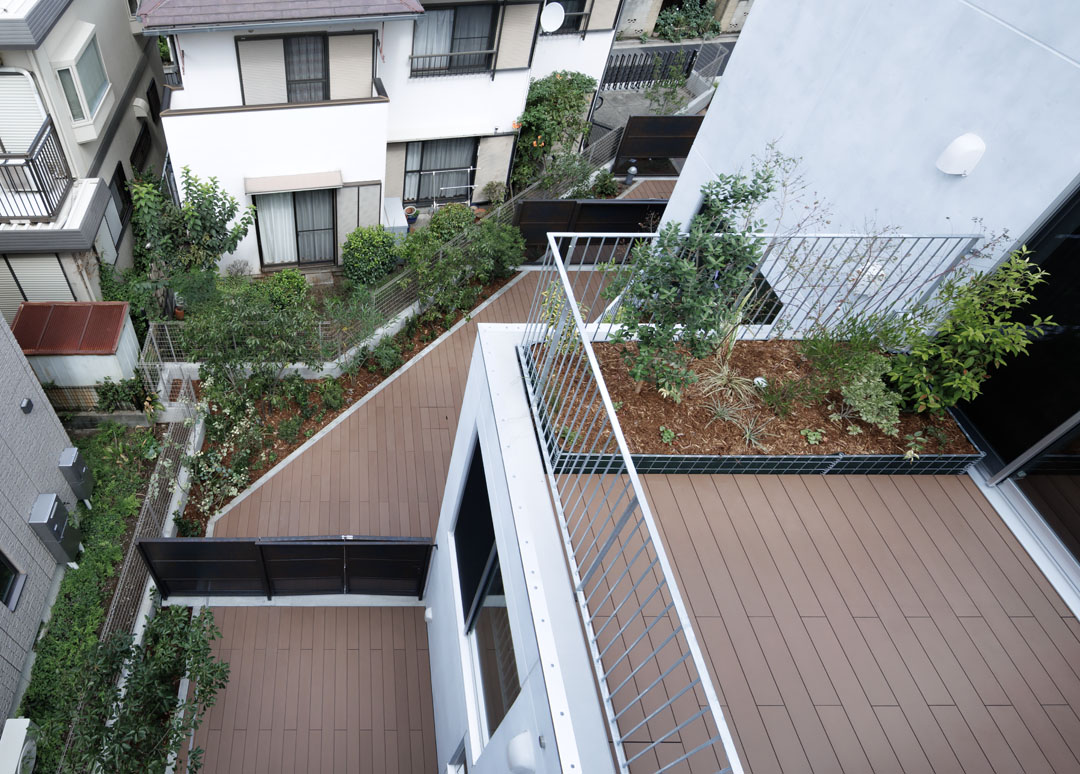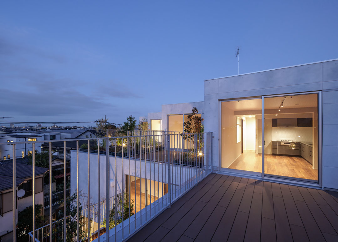 杉並区の穏やかな空気に包まれる荻窪駅。駅周辺には多彩なお店が並び、にぎやかでありながらも、少し歩けばどこか懐かしい雰囲気の住宅街が広がります。そんな荻窪の閑静な街並みに馴染むような、小さな丘のような集合住宅が誕生。 箱を重ね合わせたようなリズミカルなファサードと、緑に包まれたフォルムが特徴です。この建物の魅力は、「庭付きの1戸建て」のような住戸設計。 多くの住戸で開口の先に庭(ルーフバルコニー)があり、季節ごとに変化する中低木が彩りを添えています。 庭を設けることで隣家との距離を保ち、 プライバシーを確保しつつも豊かな窓辺から自然光を取り入れ、開放感のある空間が広がります。