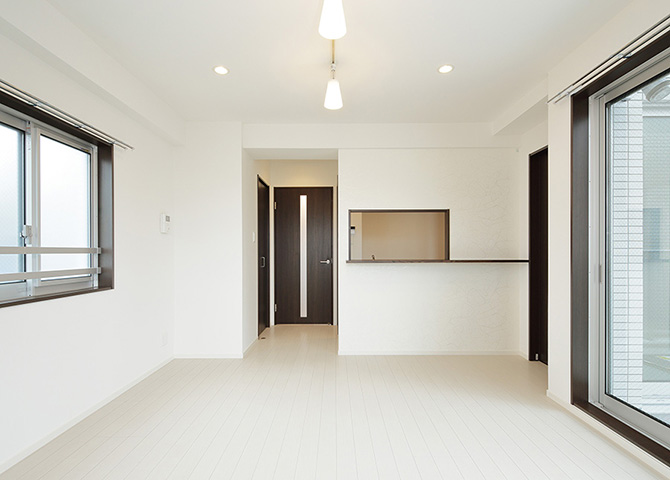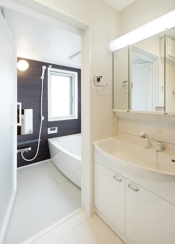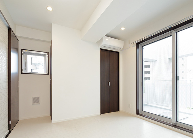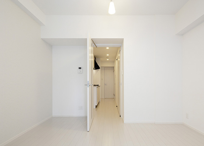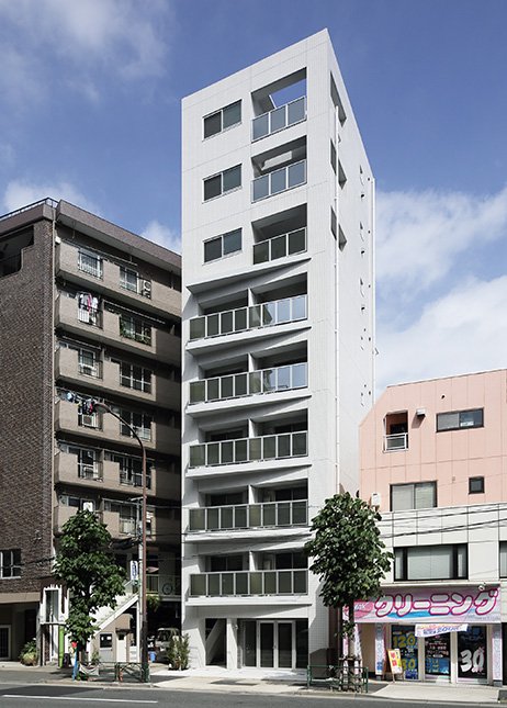 街並みの多種多様な形と色彩の中で、最も強い色彩として白を採用しました。シンプルな直方体のボリュームが、白の色彩の均質性により風景の中で純化し抽象化されることで、時を経ても色褪せない建築を目指しています。外壁タイルは、汚れが付きにくく落ちやすい光触媒タイルを採用し、竣工時の美しさを持続するようにしました。