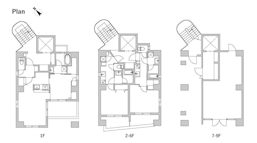 - 間取り 1K×10戸、1LDK×3戸、店舗×1戸