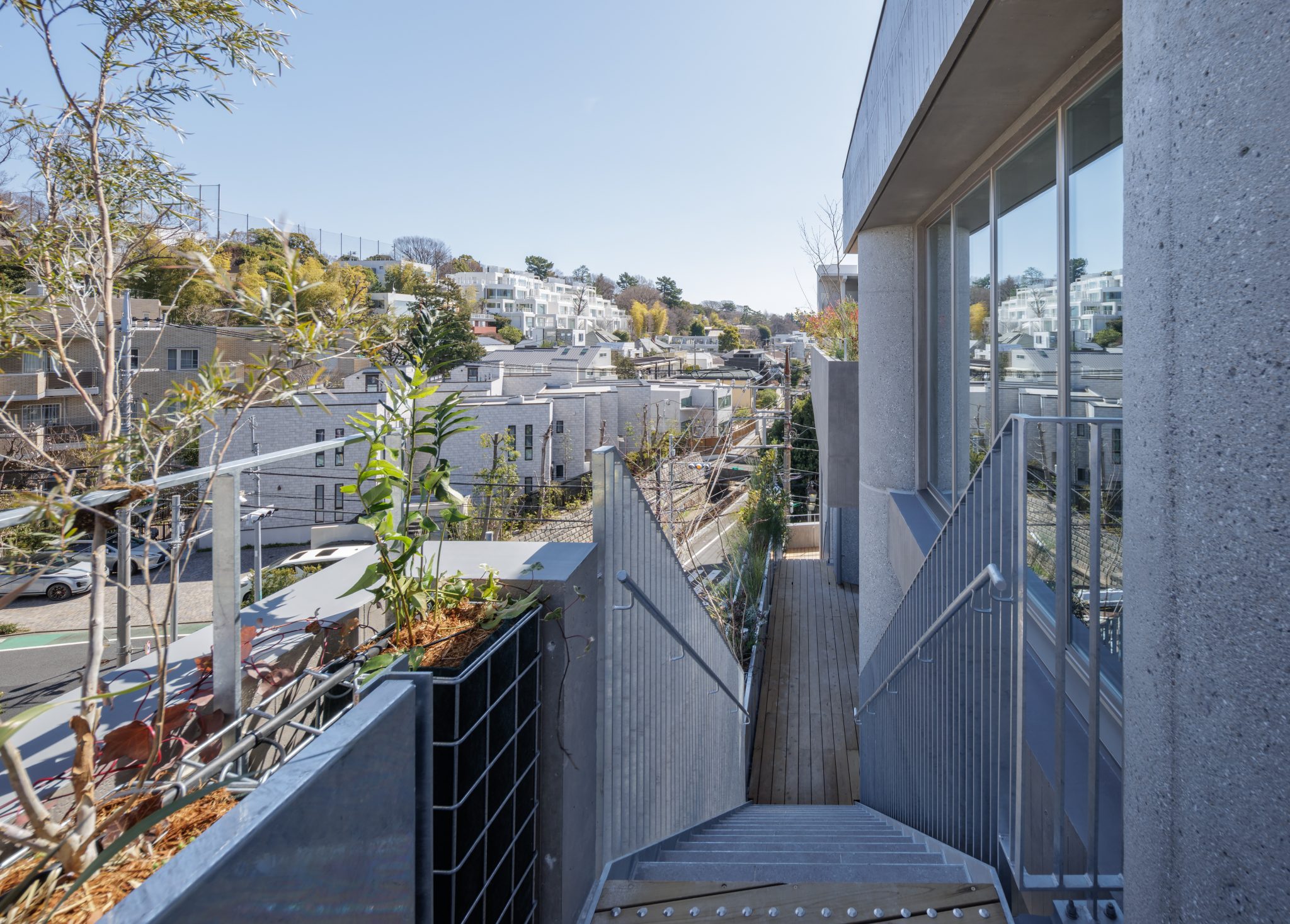 自然豊かな二子玉川の住宅街と駅のあいだに位置することから「建築によって都市に自然を還元する」ことをテーマにしています。用途に応じて、店舗にもオフィスにも対応できる柔軟な空間構成を備え、本物件で生まれる営みが、建物と街の風景を豊かに育てていくことを目指しています。外観には自然と共生するマテリアルを採用し、風にそよぎ光を受けて刻々と表情を変える豊かな植物を壁面にまとわせることで、「二子玉川の街とともに育つ建築」としてのたたずまいを形成しています。内部空間では、窓を開放すると植物の香りと澄んだ空気を取り込み、都市にいながら森の中で深呼吸をしているような、静かで豊かな安らぎを体感できます。緑が放つ空気とその気配をまとう空間は、自然とともにある心地よさをもたらします。