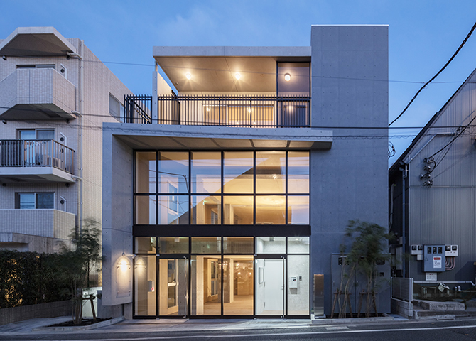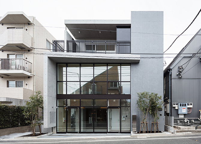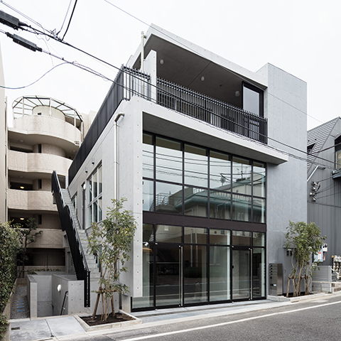 計画地は自由が丘の駅から徒歩約10分弱の商業エリアと住宅エリアの中間にあります。この地において、クリニックのあり方はどのような佇まいであるべきかを考えました。その結果、端正なプロポーションで窓や壁を構成させ、それぞれを質感豊かな素材を数種類使って構成素材に表情を与え、全体としては重厚なデザインである事を目指しました。道路の反対側には学校も位置する為に、エリアの景観に質的向上を与える事を目指し、クリニックという地域に根ざした施設として、シンボリックでありつつも、静かに、そして上品に佇む建物である事を併せて目指しています。