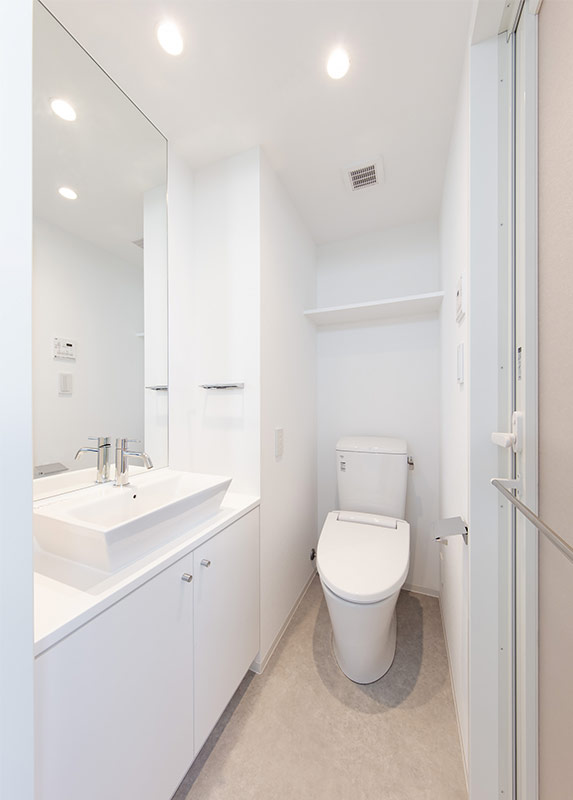 緑が丘駅が近く自由が丘も徒歩10 分、線路沿いにある敷地条件で住宅地にあるGranDuo自由が丘2。ミニマルでシンプルをテーマにしました。
